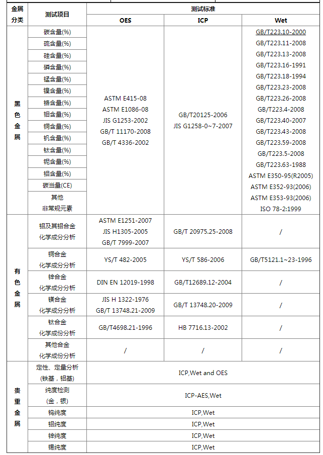 在所有的金屬成分分析檢測方法之中,滴管法、分光光度法、光譜分析法、碳硫分析法以及氧氮分析法,都是目前,標準應用最多,推廣范圍最廣的金屬成分分析法?;旧蠞M足了檢測客戶的絕大多數(shù)需求。